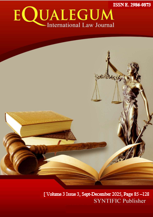 EQUALEGUM International Law Journal, with ISSN 2986-0873 (Online) published by SYNTIFIC Publisher, organized below Synto Institute and cooperation with APPIHI (Asosiasi Peneliti dan Pengajar Ilmu Hukum Indonesia). EQUALEGUM International Law Journal is a peer-reviewed journal with the scope of law sciences, such as law, economic law, business law, trading law, and development of law. The list of article types and their respective formats are Original Article, Community Service Article, Literature Review, Systematic Review, Case Series, Commentary, and Letters to Editors. The Publication frequency of EQUALEGUM is triannual, in the month of January-April, May-August, and September-December. |